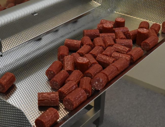 The Kyoei Cutter portions sausage links, jerky and snack sticks using the simplest possible design. By enabling long continuous stuffing and clean cutting, it reduces casing and meat waste, lowering your costs and increasing stuffing speed. Precision-made in Japan for durability, long life, and minimal maintenance. Fast, safe, and quiet: no electricity, no hearing protection required. Portion sizes adjust easily, and the tool cleans up quickly.